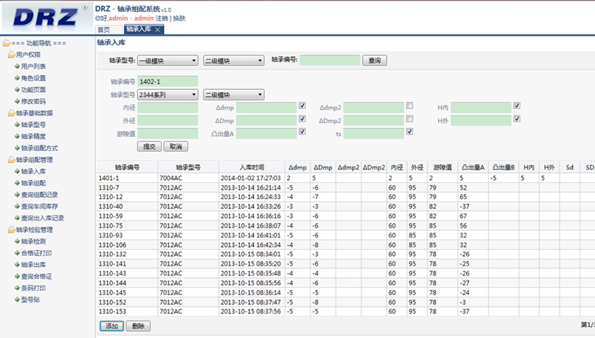 - 軸承組配管理:管理軸承組配的整個(gè)過程,包括軸承入庫,軸承組配,軸承出庫等