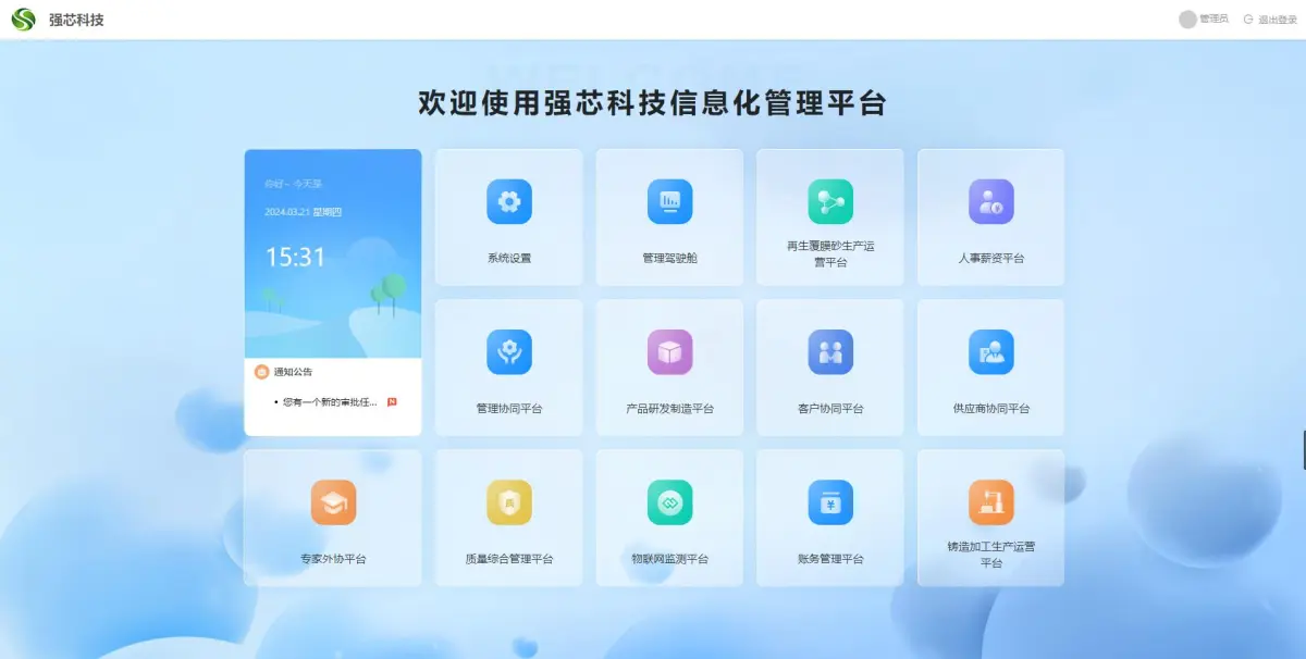 再生覆膜砂生產(chǎn)運(yùn)營(yíng)平臺(tái):工作日志、銷售管理、倉(cāng)庫(kù)管理、采購(gòu)管理、車間工廠、工作流、消息中心