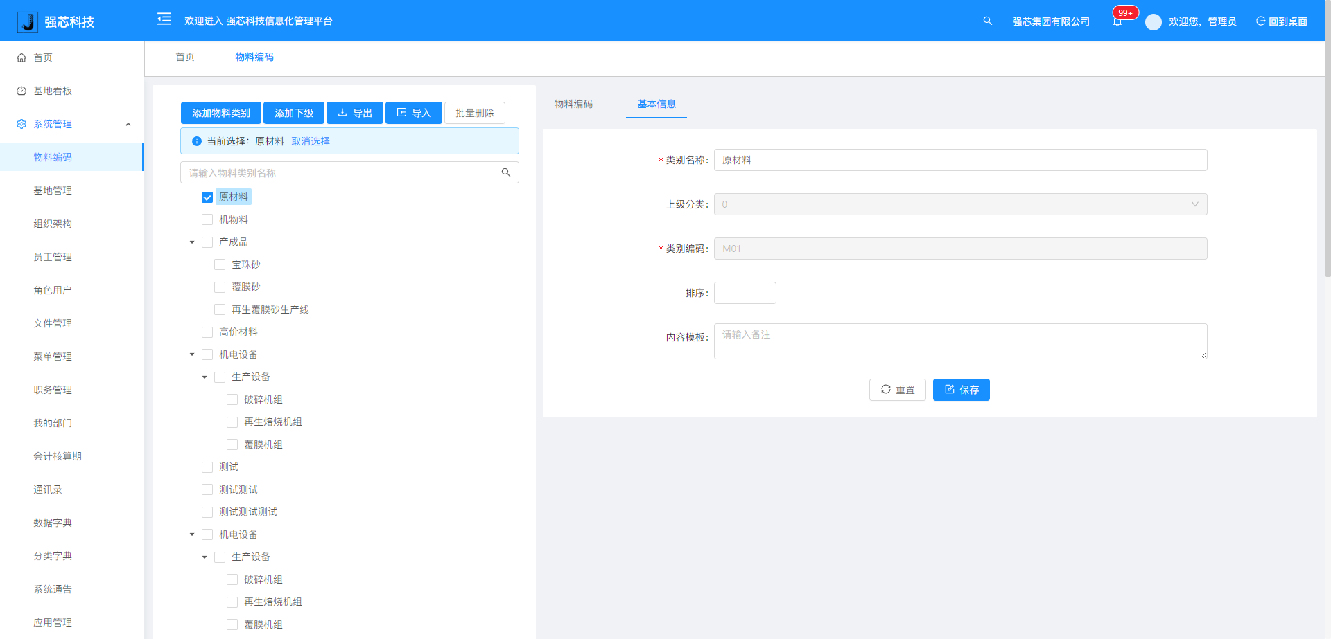 系統(tǒng)設(shè)置:物料編碼、基地管理、組織架構(gòu)、員工管理、角色用戶、菜單管理、職務(wù)管理、會(huì)計(jì)核算期、授權(quán)設(shè)置